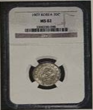 <p>JINDA18-17 KM-1128 小型 -UNC</p> <p>(1907 대한제국 광무11년 20전)</p> <p> </p> <p>2. Grade</p> <p>MS62</p> <p> </p> <p>3. Coin Certification</p> <p>NGC 3306250-058</p> |