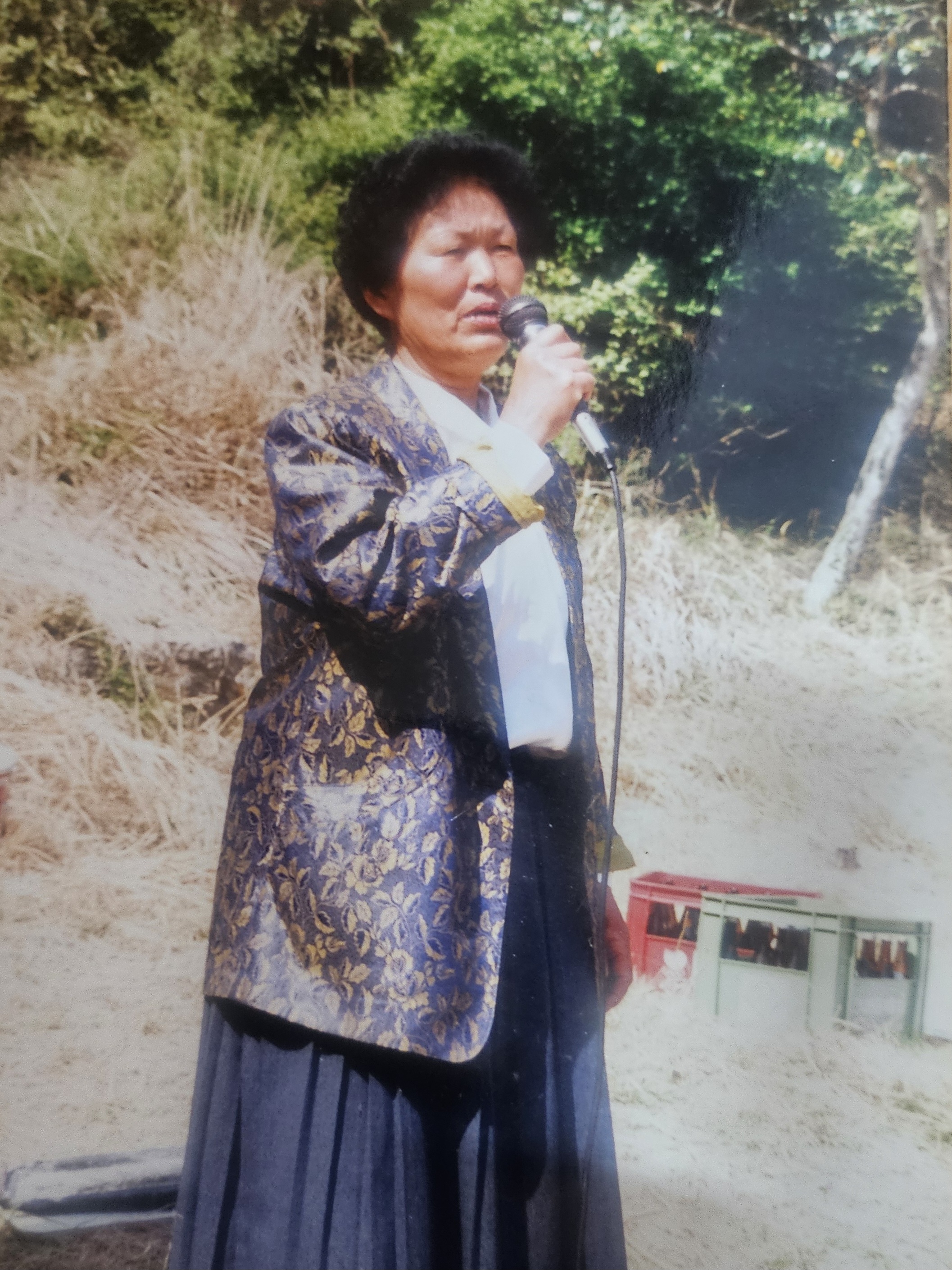 (손자)한연 봄소풍 때에는  노래도 한곡조하실정도로  흥도많으셔서 모으는 노래도없으시고 면민 노래자랑에서는 우수상도입상하셨고  면민경로당에서는 효부상을 받을정도로 열심히 하셨지만 자신의몸은 돌보지도  못하시고 억척스럽게일만하시다 70세때에는 걷기도힘들었다 ~^