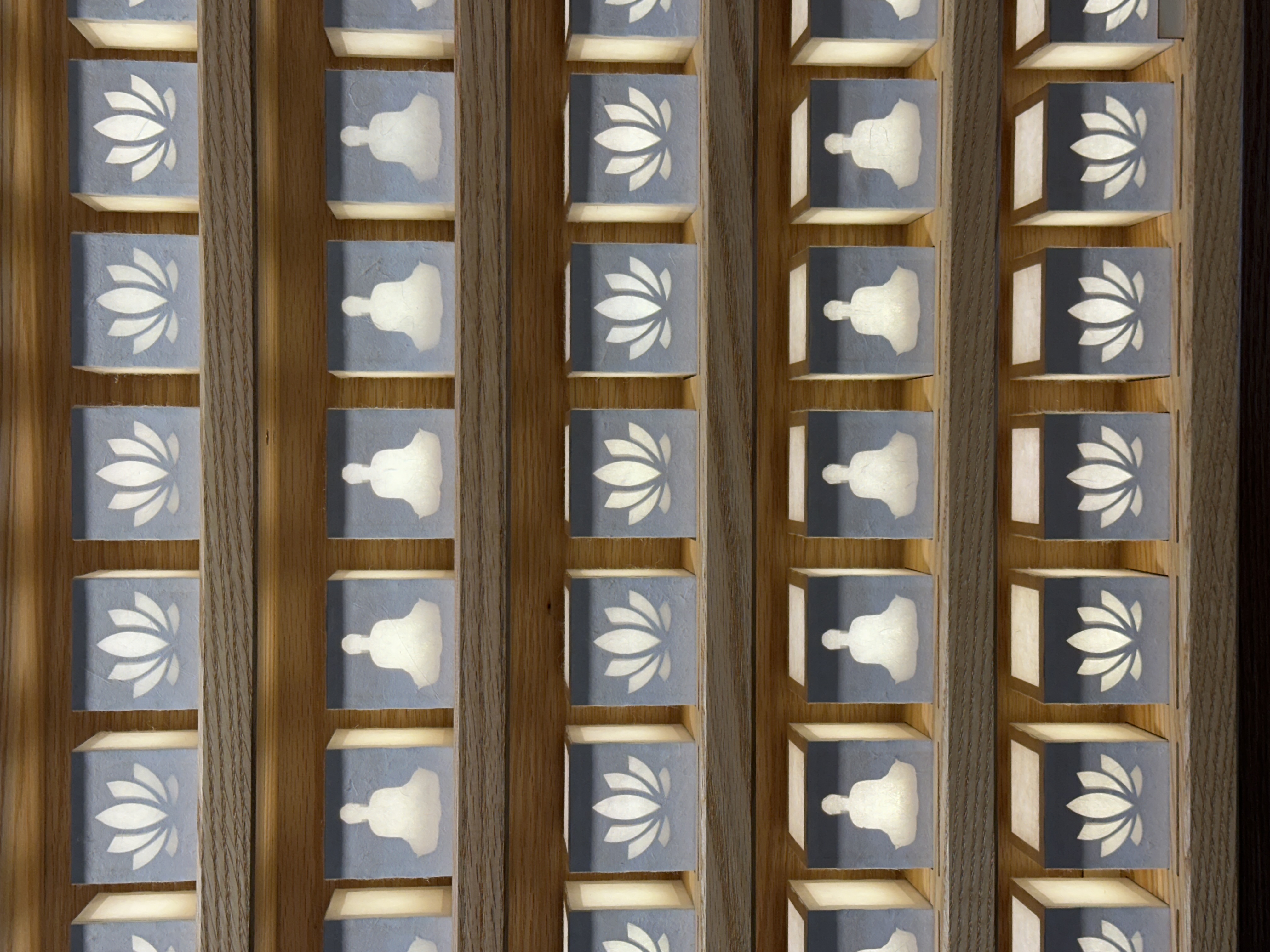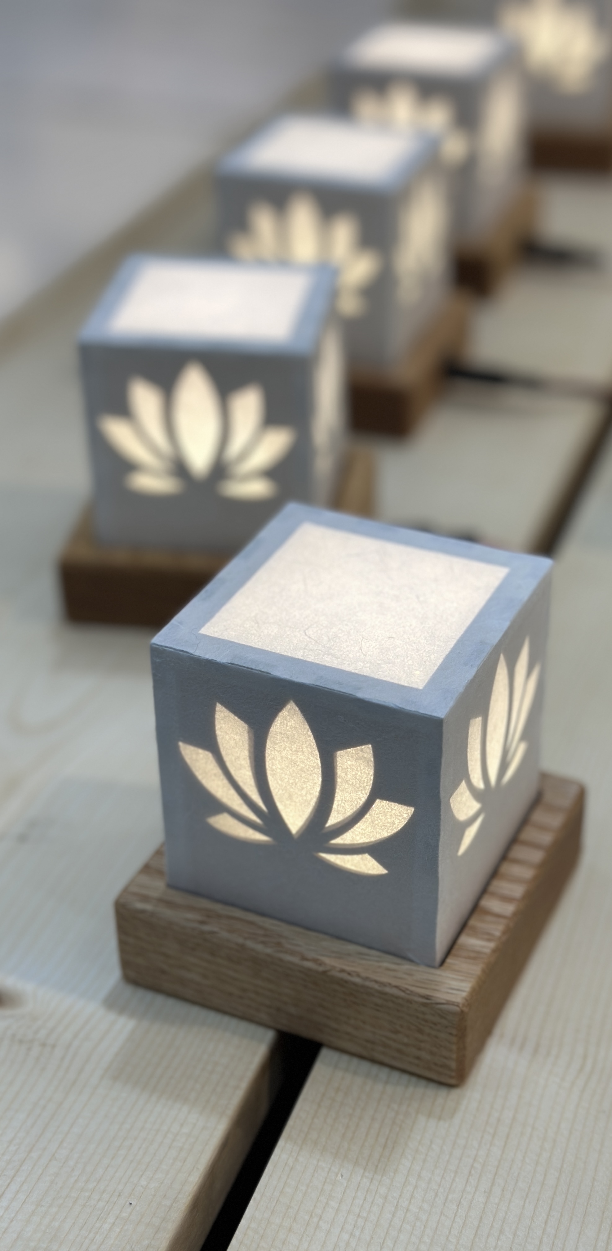원목(오크,월넛)틀에 LED광원과 한지를 이용한 갓을 만들어 불단용 인등을 제작, 일반인들에겐 인테리어용 조명으로도 환용가능.