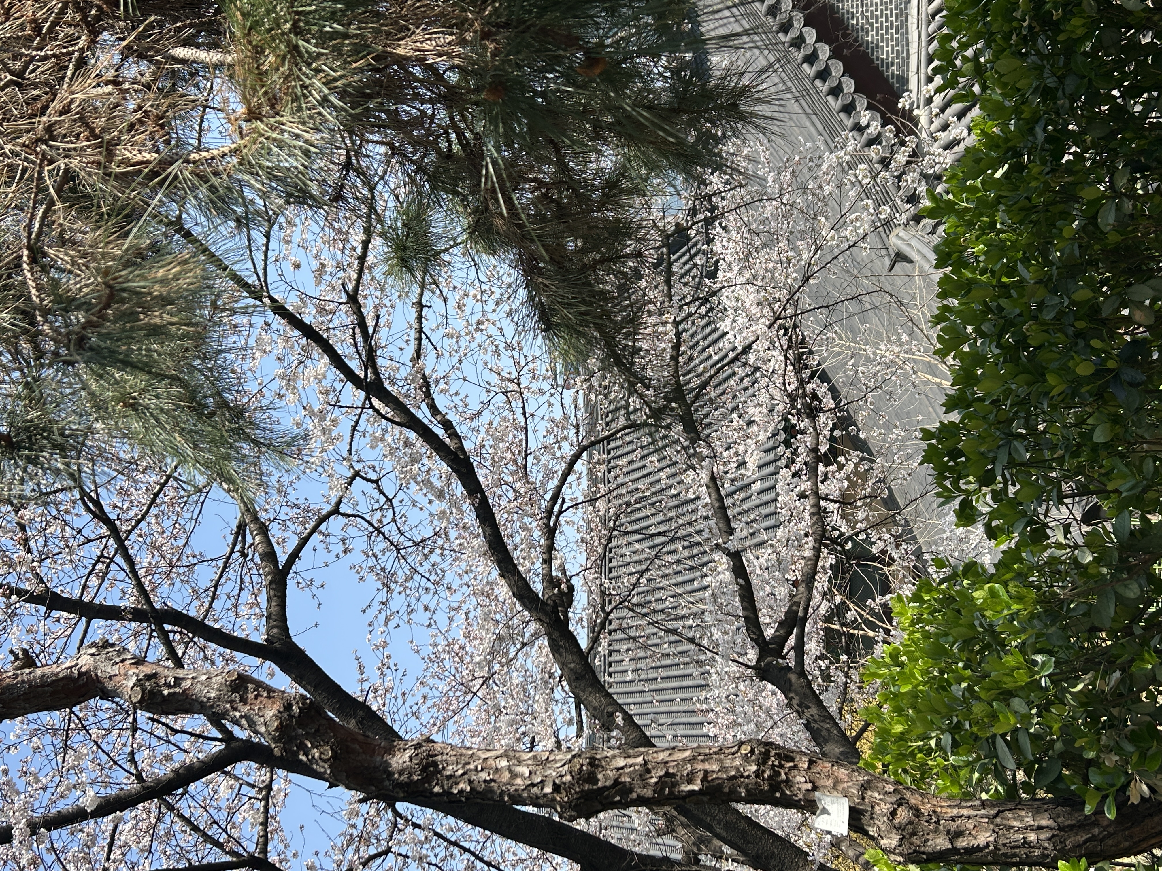 벚꽃 위에 무지개가 뜬 희귀한 사진