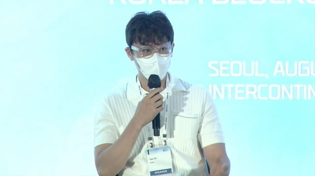 8일 오태림 글루와 대표가 그랜드 인터컨티넨탈 서울 파르나스에서 열린 코리아 블록체인 위크(KBW 2022)에서 '기존 금융에 크립토·대체불가능토큰(NFT)을 포함한 대중화'라는 주제의 패널 토크에서 발언하고 있다. / 사진=KBW 2022