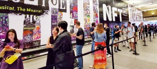 세계 최대 NFT 행사인 ‘NFT NYC’가 22일(현지시간) 미국 뉴욕에서 열렸다. 참석자들이 뉴욕 메리어트 마르퀴스 호텔에서 세션 행사에 들어가기 위해 1시간 전부터 대기하고 있다. /뉴욕=최다은 기자