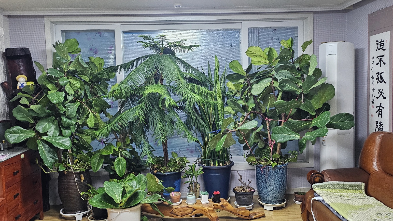 떡갈고무나무, 아리오카리아 등은 여러번 이삿을 하면서도 거실에서 같이 30년 세월을 보낸 거실수로 우리 가정의 희노애락 그 누구보다 같이 살아온 가족이고 거실의 미니 동산 역할을 해주었다.